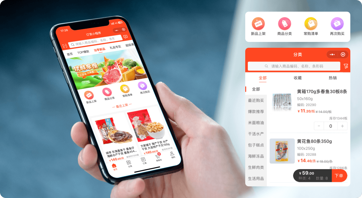 圍繞生鮮農貿企業與下游客戶的全渠道業務流程設計,以訂單處理為核心,幫助企業快速構建專屬的全渠道營銷訂貨平臺,生鮮行業場景的一體化全流程管控。