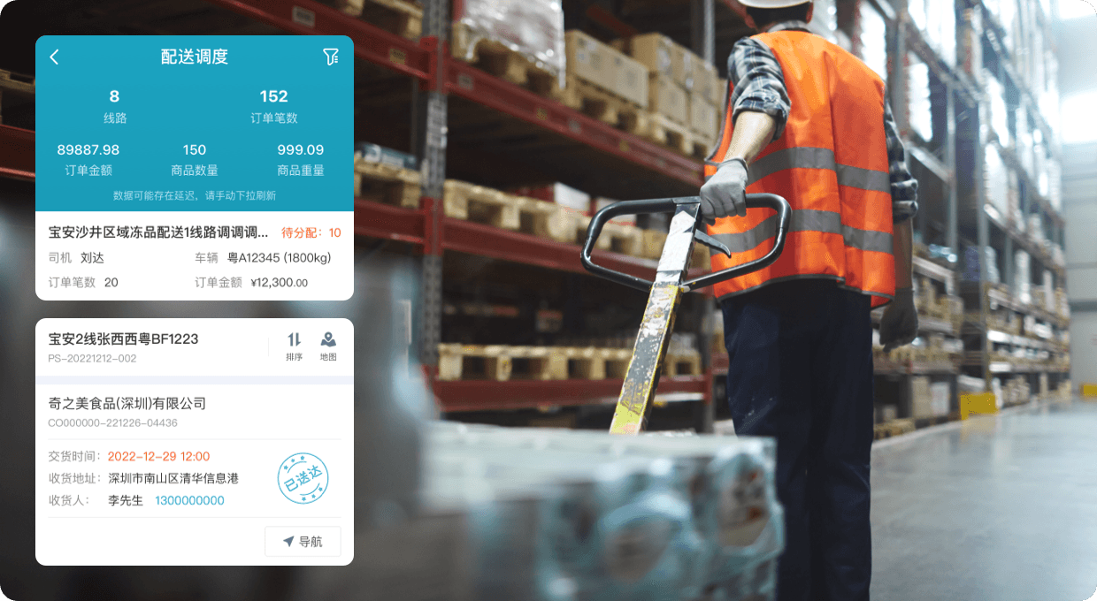 B2B訂單多了,必須要按線路分揀,保證效率。易訂貨線路分揀可根據客戶下單情況自動排線,分揀前調度員可以直接在手機上查看線路情況并快速度進行調度,倉庫可以直接按線路打單分揀,司機可以通過APP直接確認裝車,還能實現配送線路導航,為客戶提供司機送貨位置信息等。