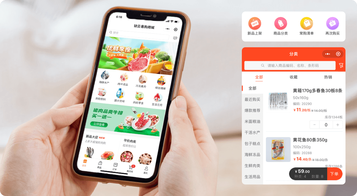 定制您的品牌商城,向不同客戶展示不同產品和價格,無須業務員介紹,客戶自己就能看到常購產品、促銷產品、新產品;在線收單,讓下游客戶登錄訂貨商城自己下單,免去業務員代下單工作,減少錯單漏單