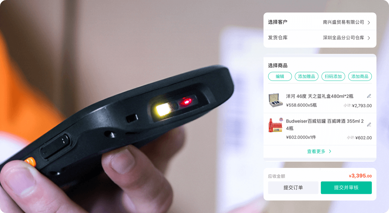 若您有門店銷售場景,店員可以邊導購邊用PDA快速開單,云打印訂單,還可掃碼收款,讓店員開單效率比手工抄單提高好幾倍!開單后一鍵出示收款碼,快速收款